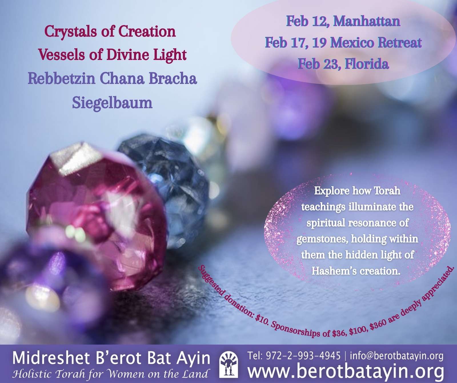 Through learning, reflection, and experiential awareness – focusing on the gemstones of the Kohen Gadol’s Breastplate – we will also discover how they correspond to the twelve tribes of Israel, guiding us to attune our souls to the harmony of the natural world and the sacred energy embedded within it.