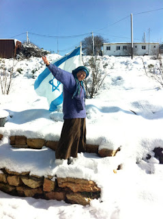 | Rebbetzin relishing the snow at B’erot |
