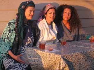 | Rebbetzin with her two sisters on her porch in Bat Ayin |
